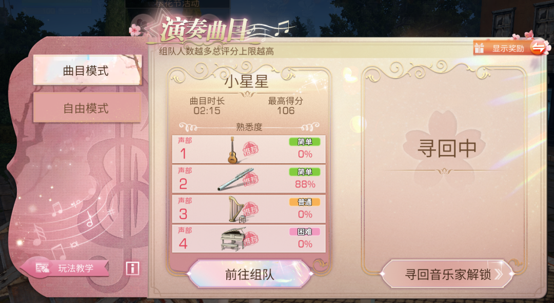 樱花演奏还设有自由模式
