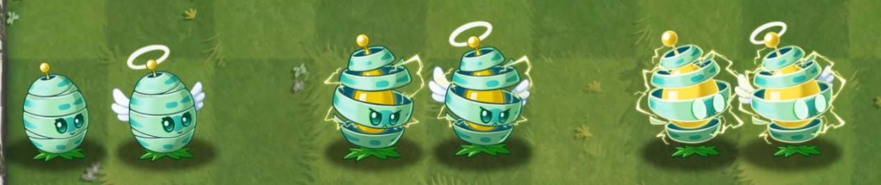 二阶-电能加成:根据当前蓄电雪松果所处的蓄电状态和当次攻击的电环大小,在发动攻击前向以蓄电雪松果自身为中心的1*1、3*3、5*5环形范围的电系植物(含雪松果本体)提供短暂的攻击力加成。