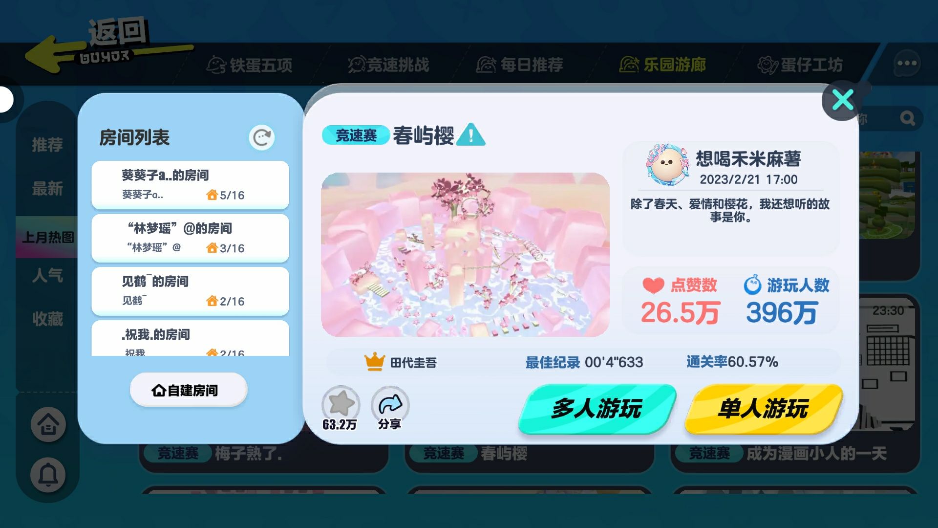 【地图分享】(推荐地图)地图名:春屿樱 非常适合打卡👍