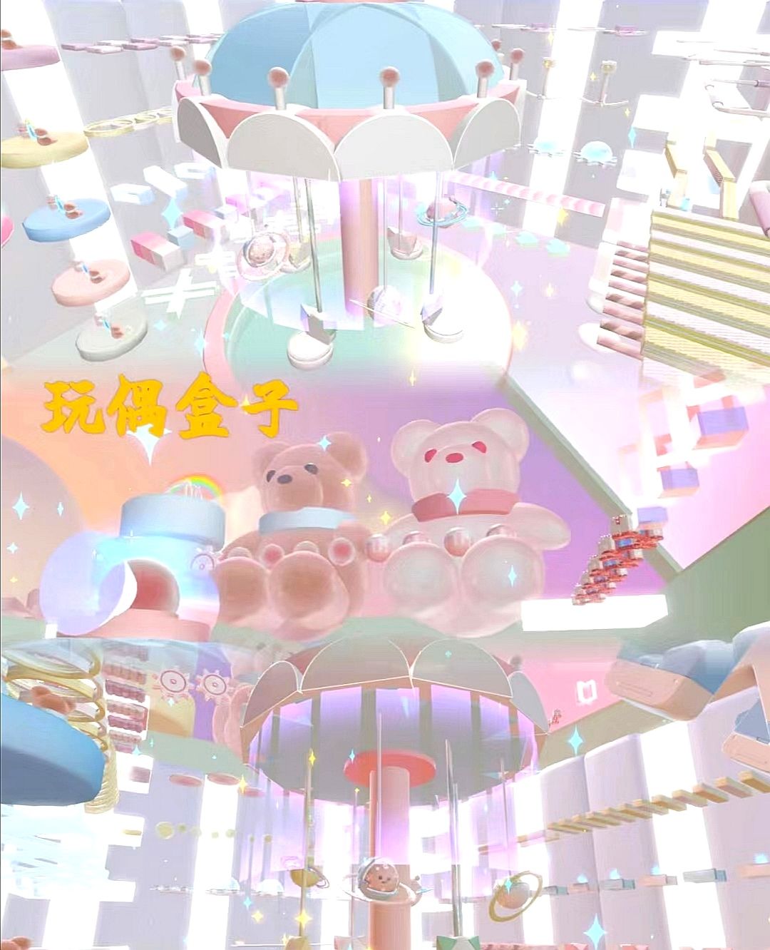可可爱爱的一张图,有旋转木马还有两只小熊