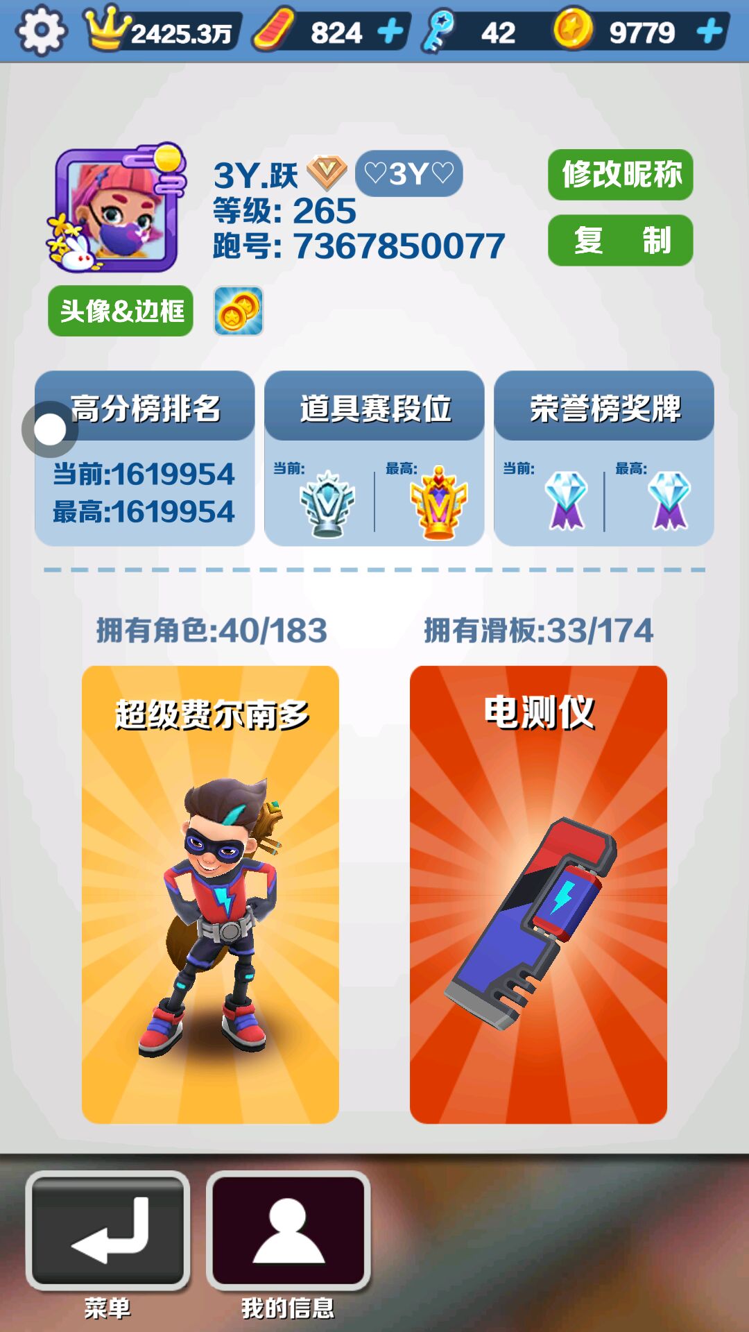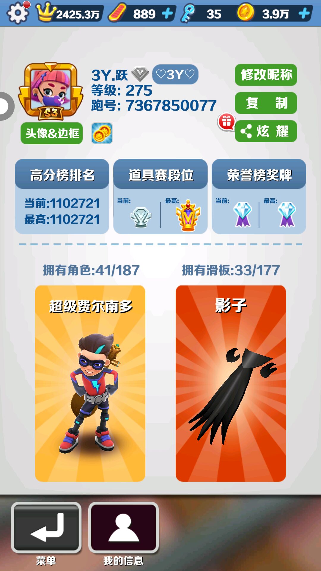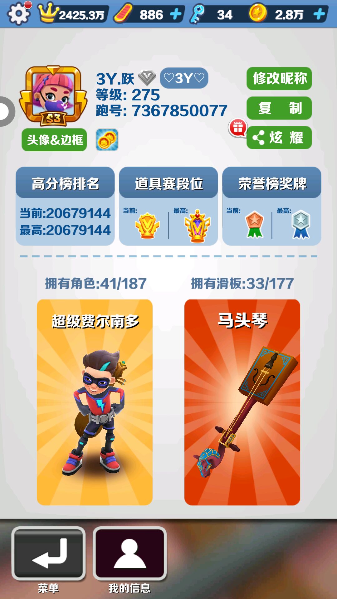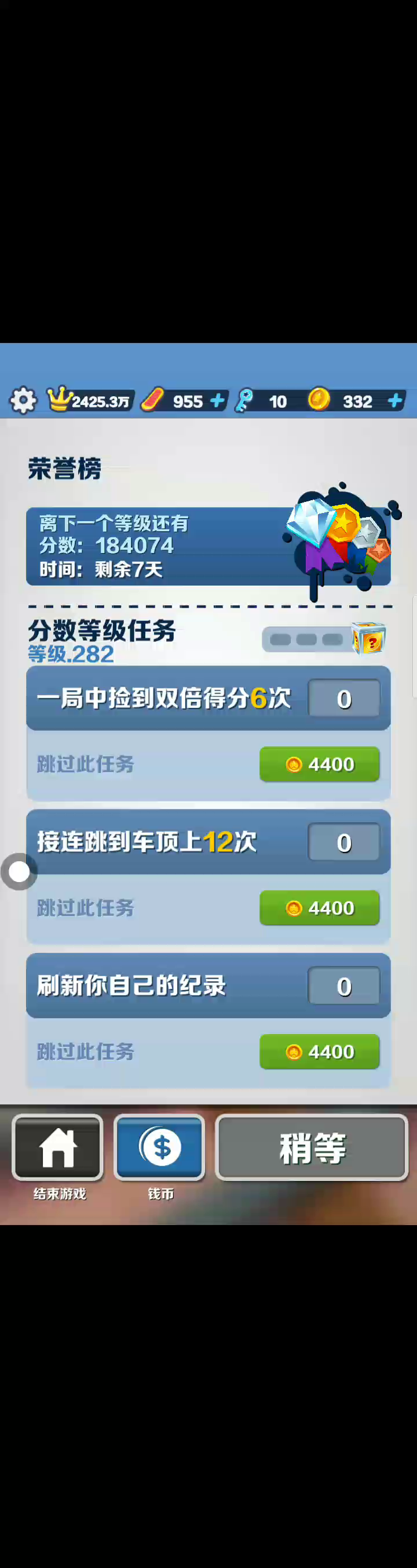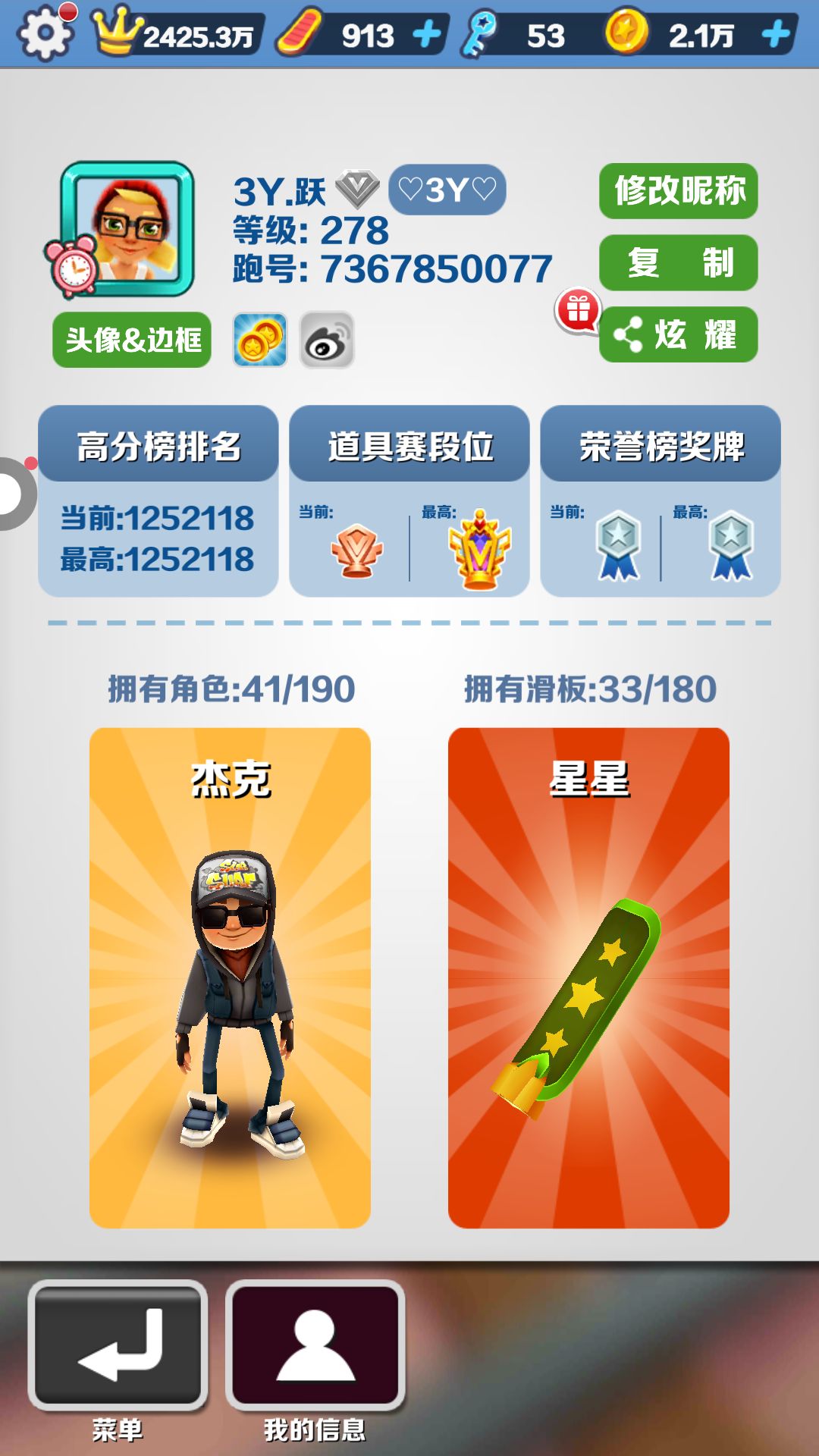 我想知道278级在地铁跑酷是什么级别的?
