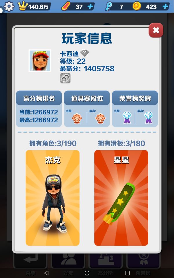 狐妖天族每日话题:《整整五年没玩地铁跑酷,现在回归,刚玩7天,我这分数正常吗?😊》
