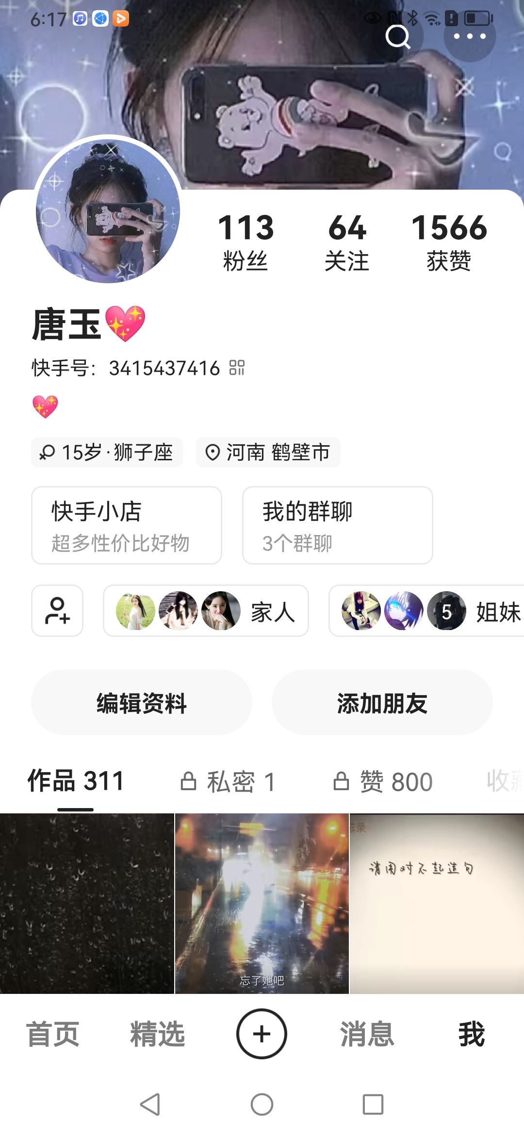 宝贝有快手嘛,一起玩噢,3415437416,加我吧💖