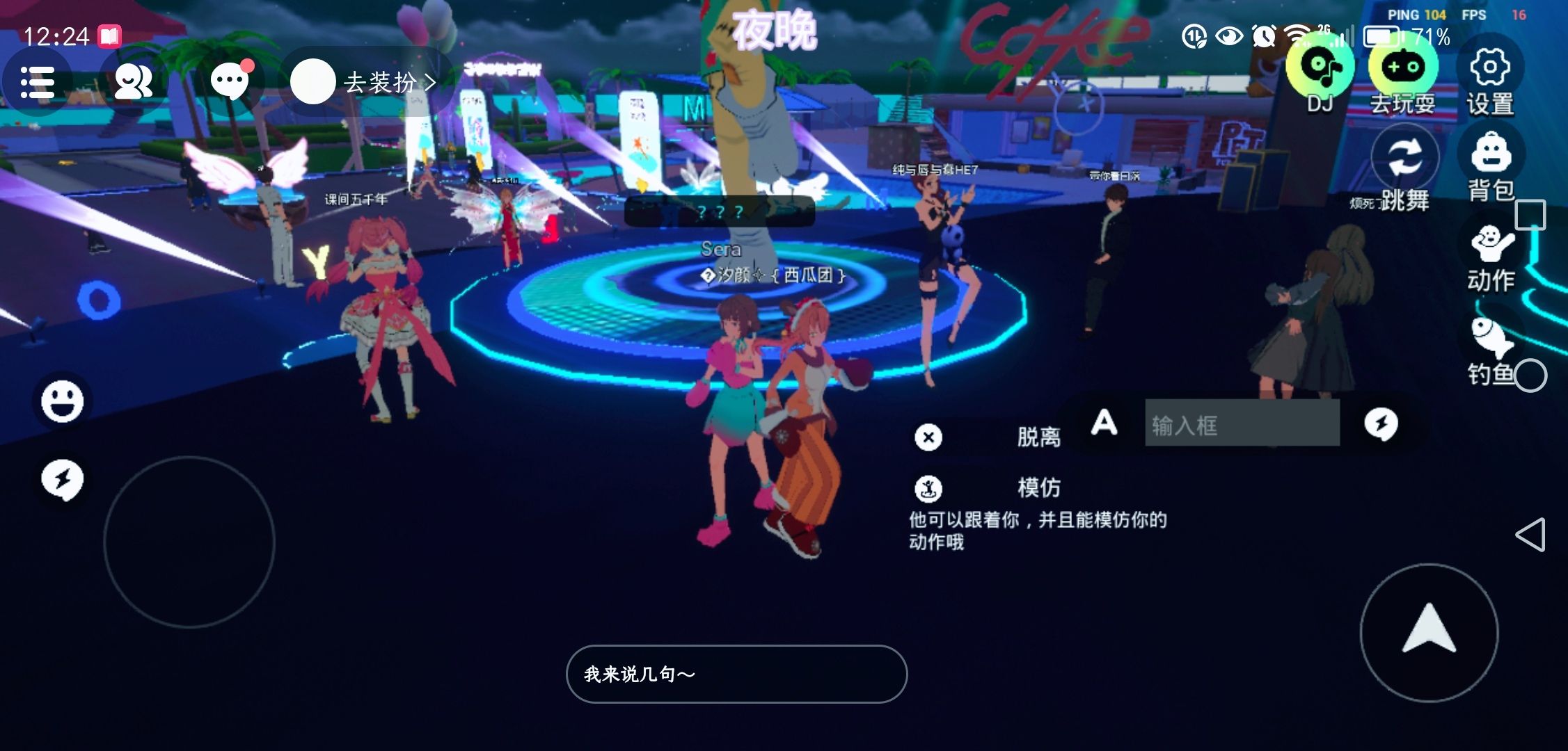 晚上,参加跳舞派对和大家一起跳舞~🥳
