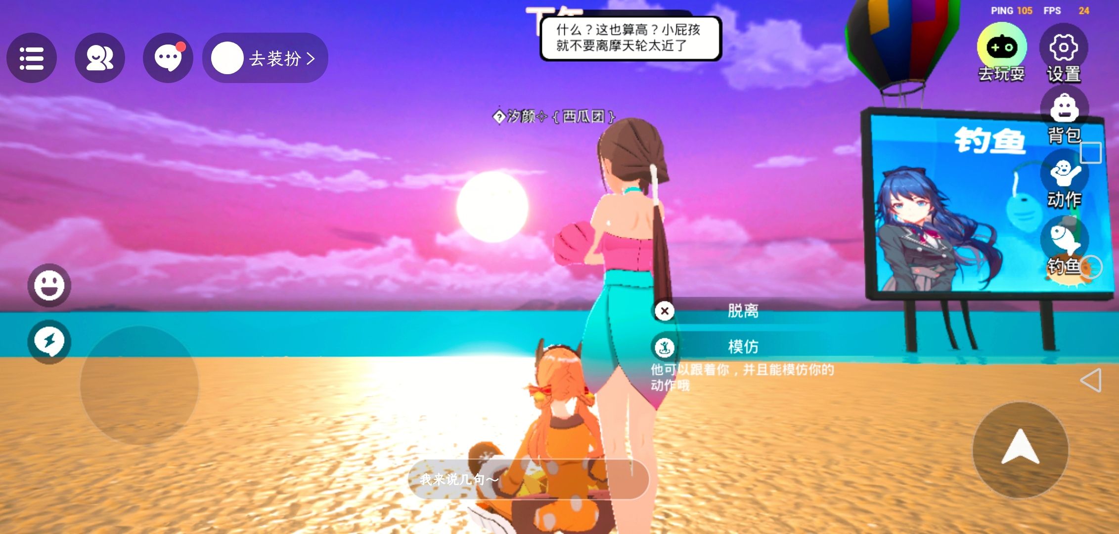 无聊的时候和(NPC)美女一起看日落,夕阳很美耶~😄