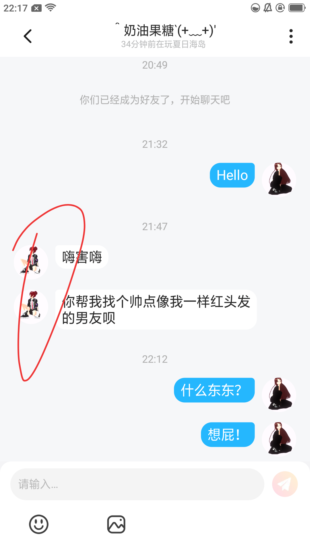 帮我的朋友找对象了啊!要红色头发的!性格要小狼狗的。