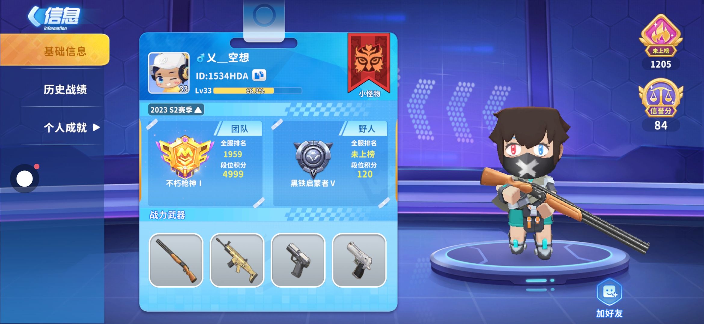 本人蓝钻二,全服排名392,有没有加好友的?要求黄金以上有皮肤