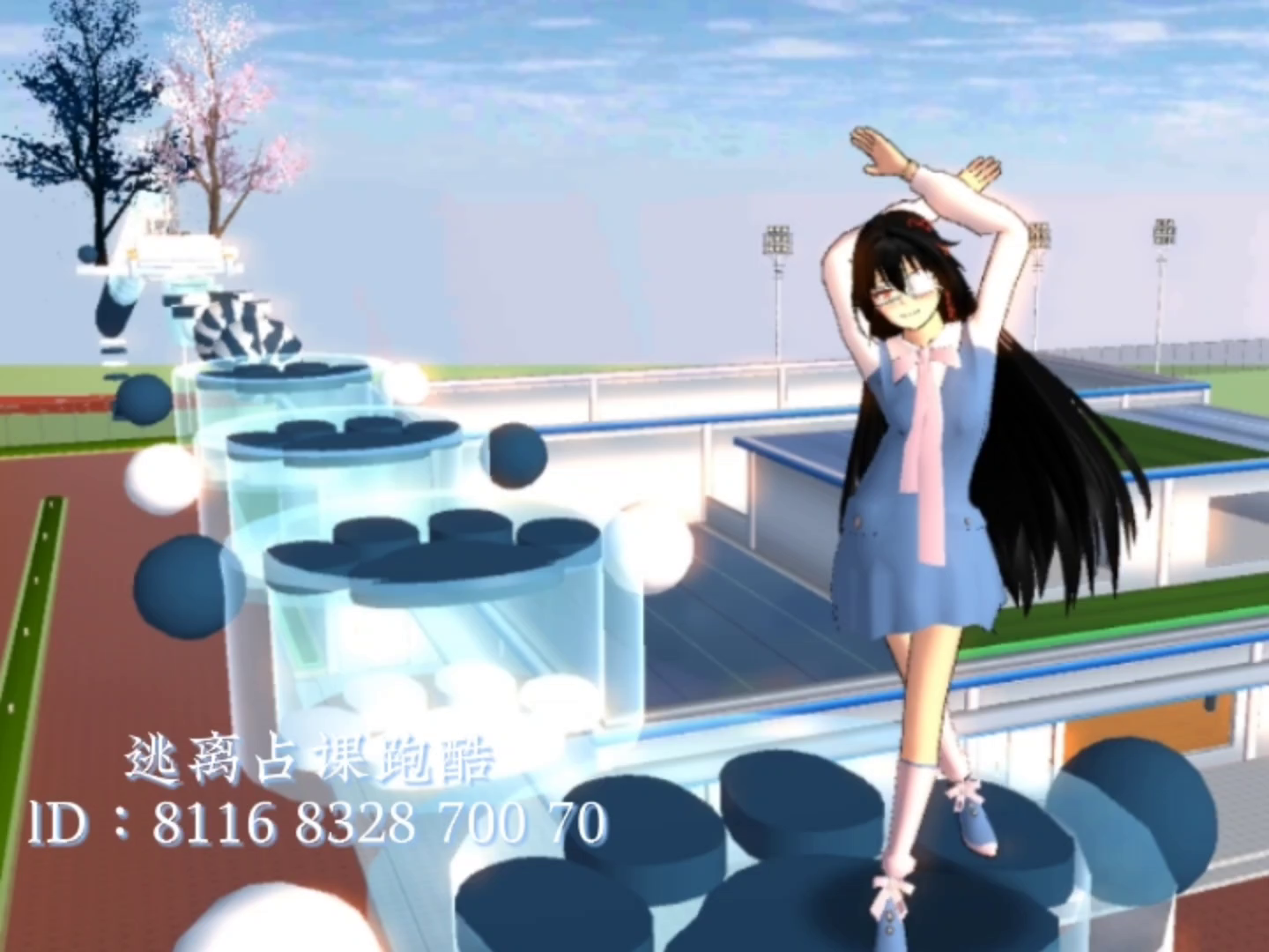 这是樱花校园模拟器里名为“逃离占课”的跑酷地图,作者自称制作得不算完美,欢迎玩家打卡体验,还附上了地图ID,同时求点赞,地图设置有休息区,风格粉嫩。