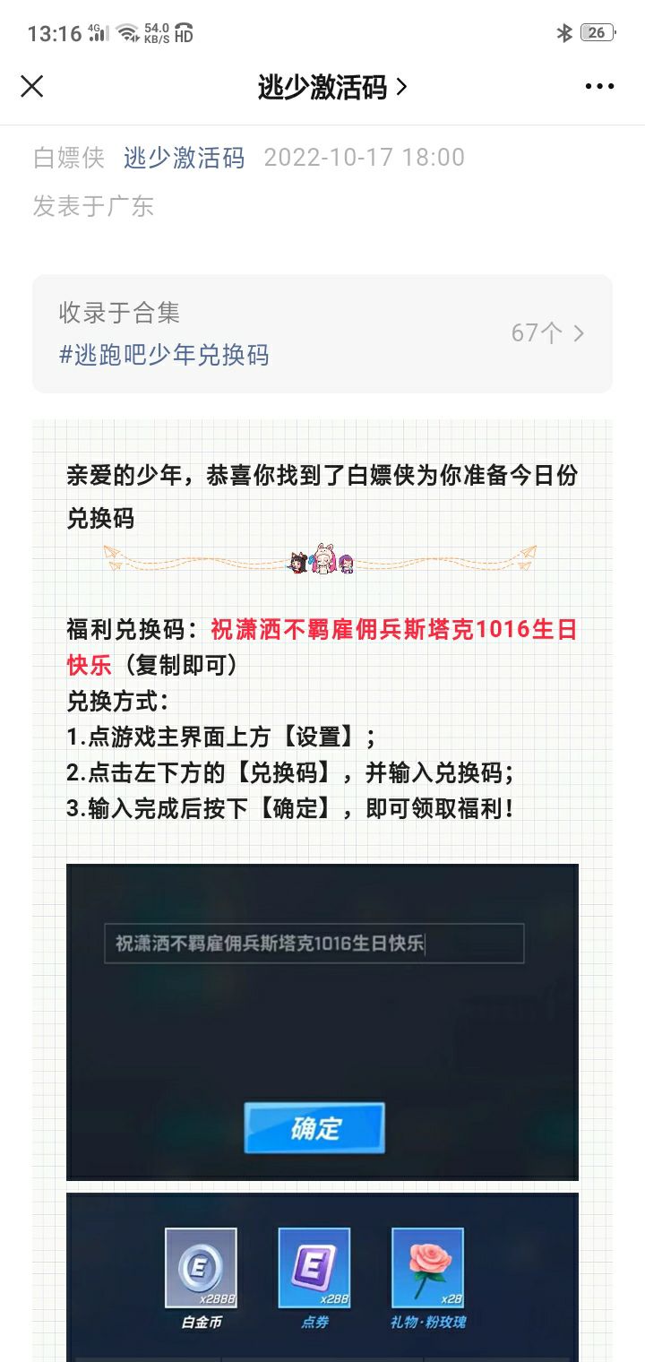 有288点卷的兑换码😁