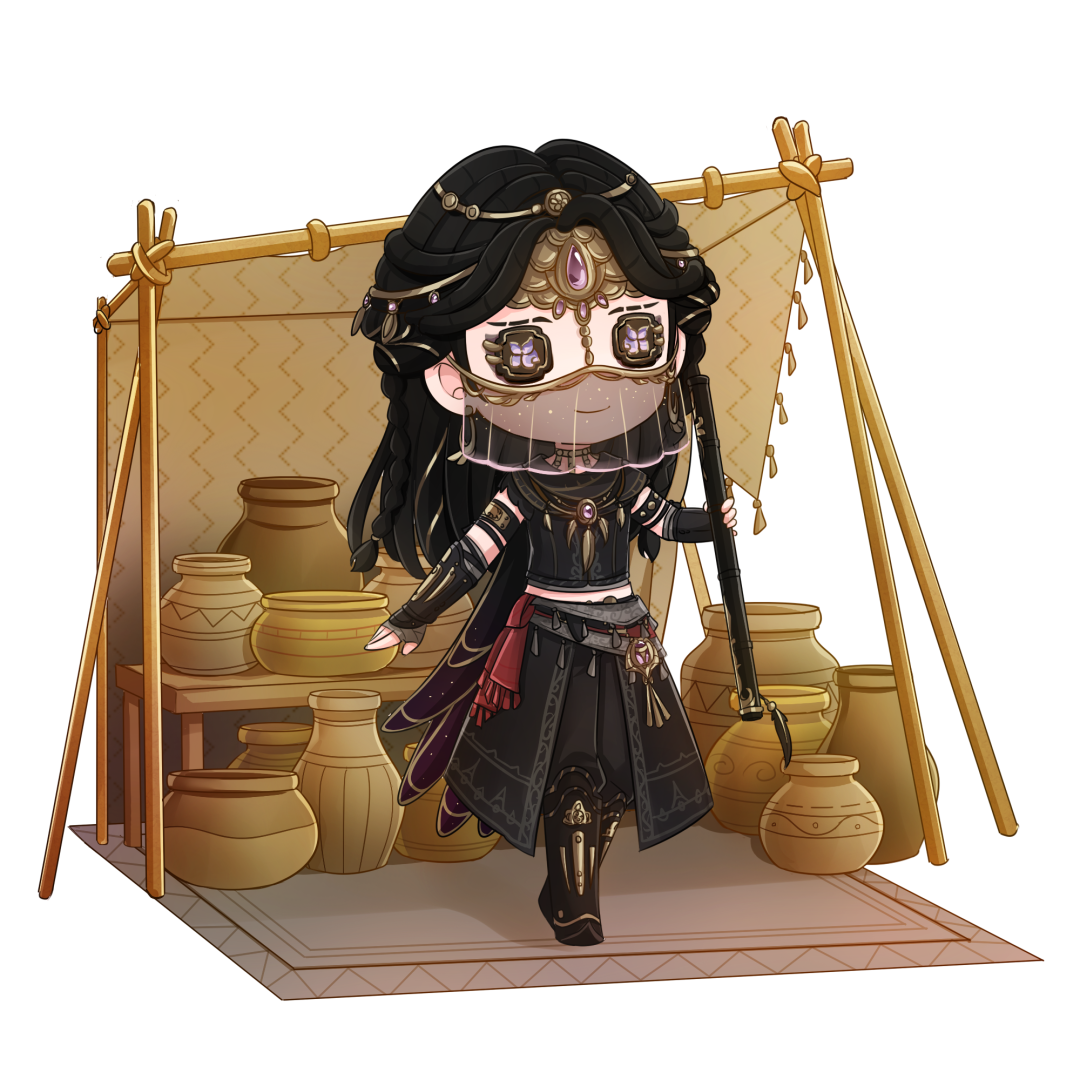 黑鸦正四下张望,身后的羽毛披风随风曳动。淡紫色面纱下,也许掩盖着更深的计谋。 游戏内展示