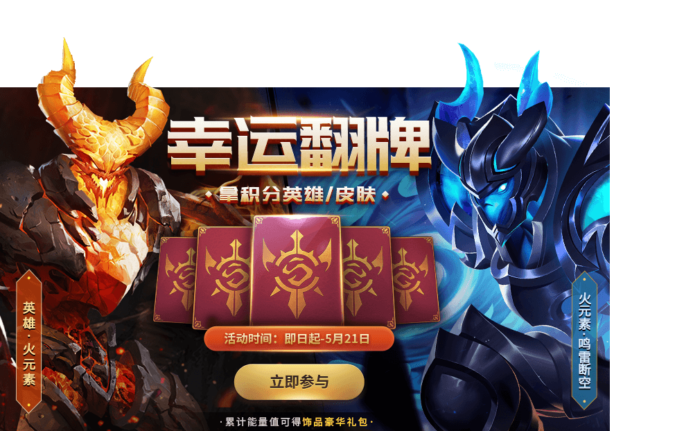 参与就有机会获得 新皮肤火元素-鸣雷断空、火元素等奖励~
