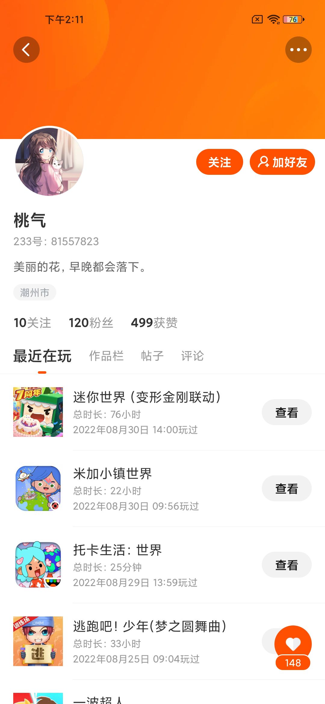 因为我以前也是有120个粉的