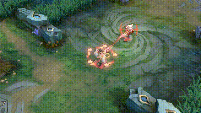 羲和向前方释放赤阳之锁,缠住第一个命中的敌方英雄,每0.5秒对其造成法术伤害,最多持续3秒。