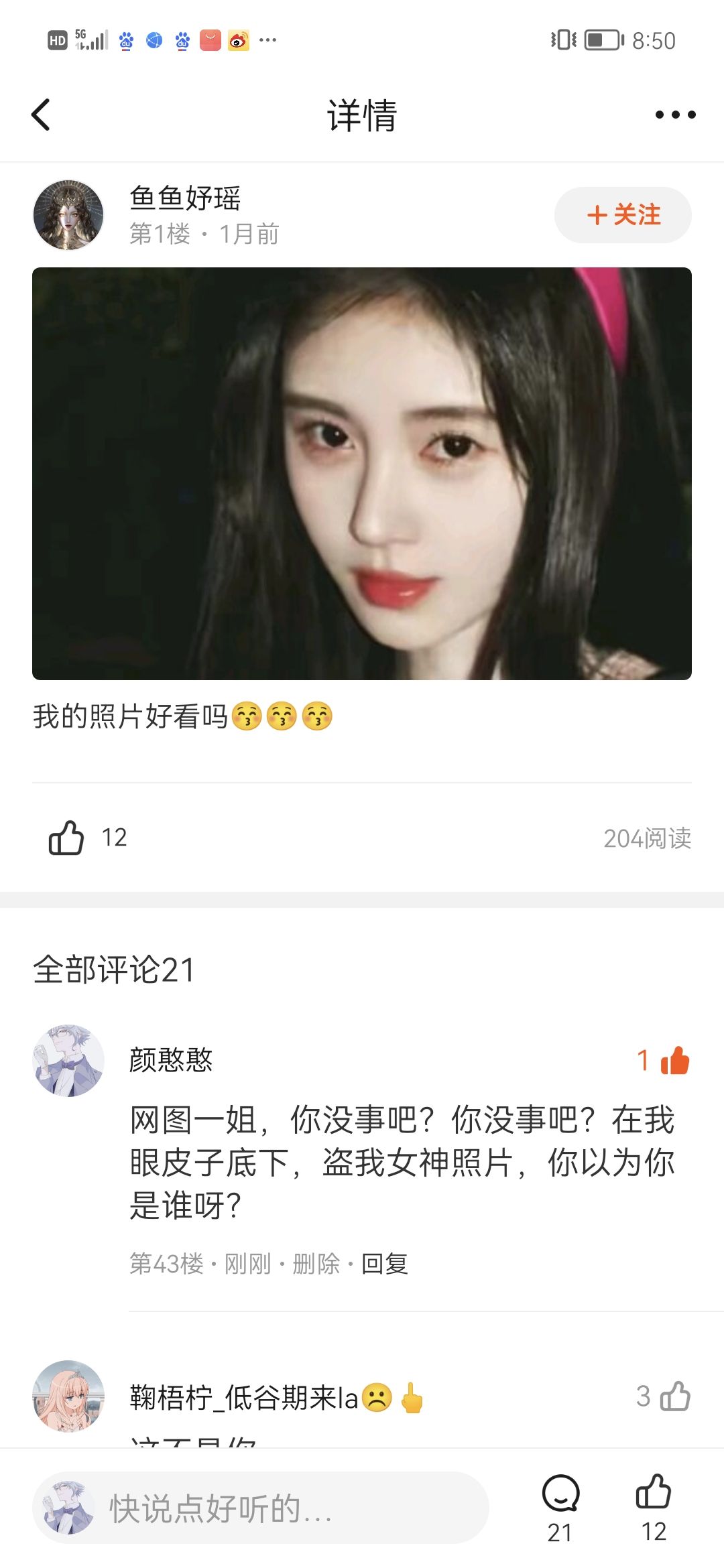 这人是不是油饼,闲的慌,盗我女神照片,无语,大家快去举报她💢