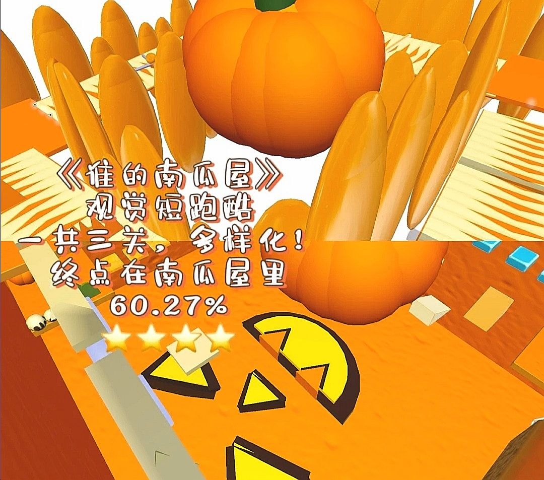 ②南瓜追逐:躲避障碍物,追上奔跑的小南瓜!没追上也没关系,小南瓜会在本关终点处停下