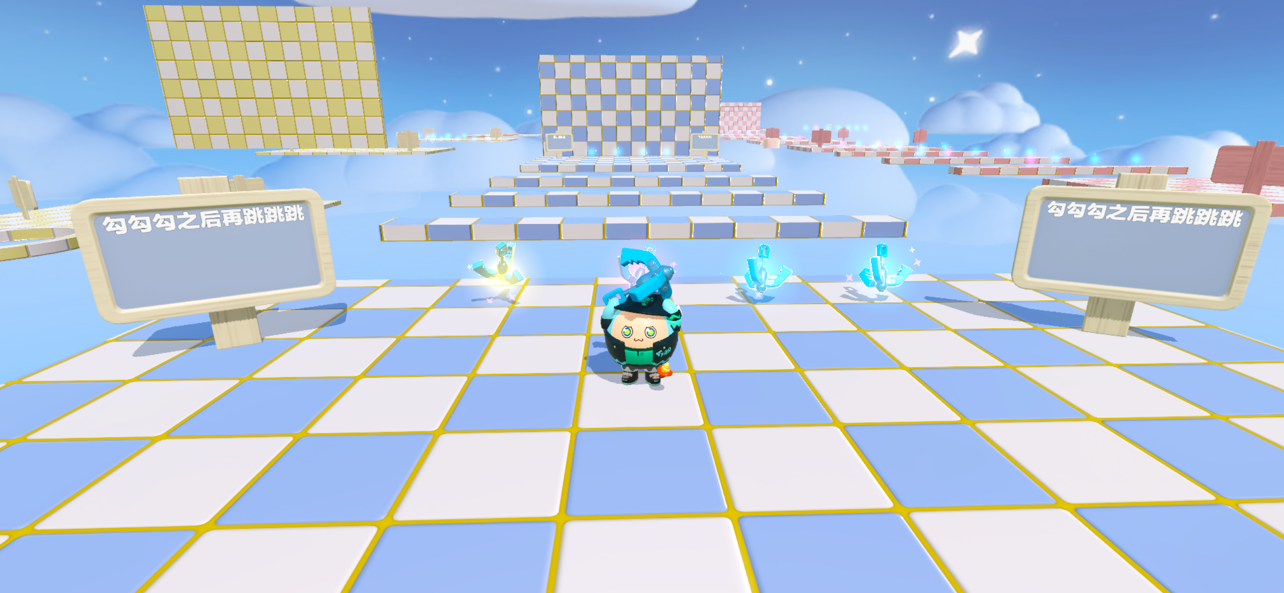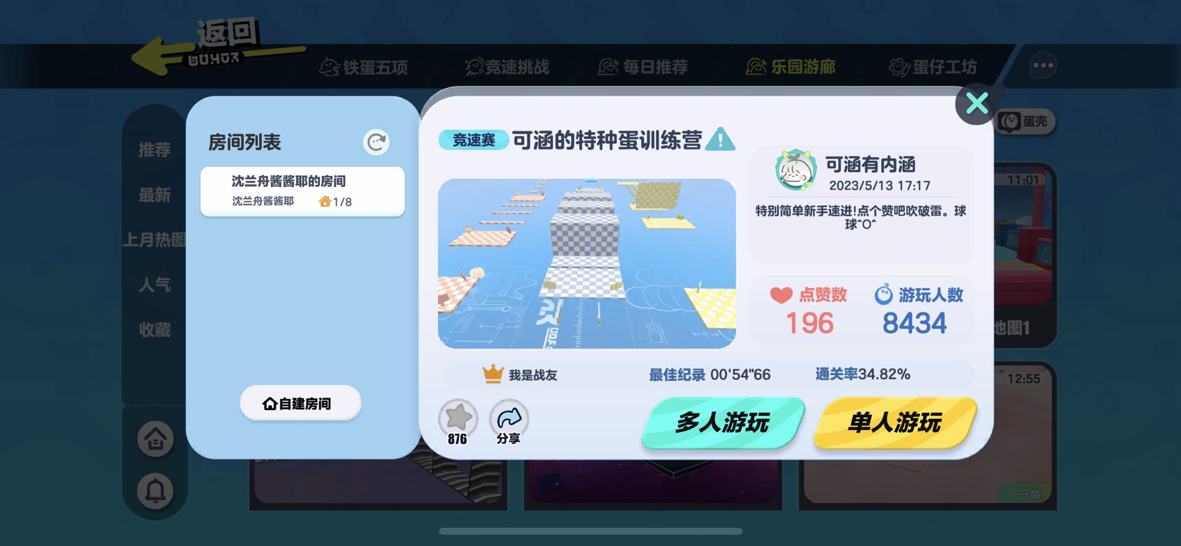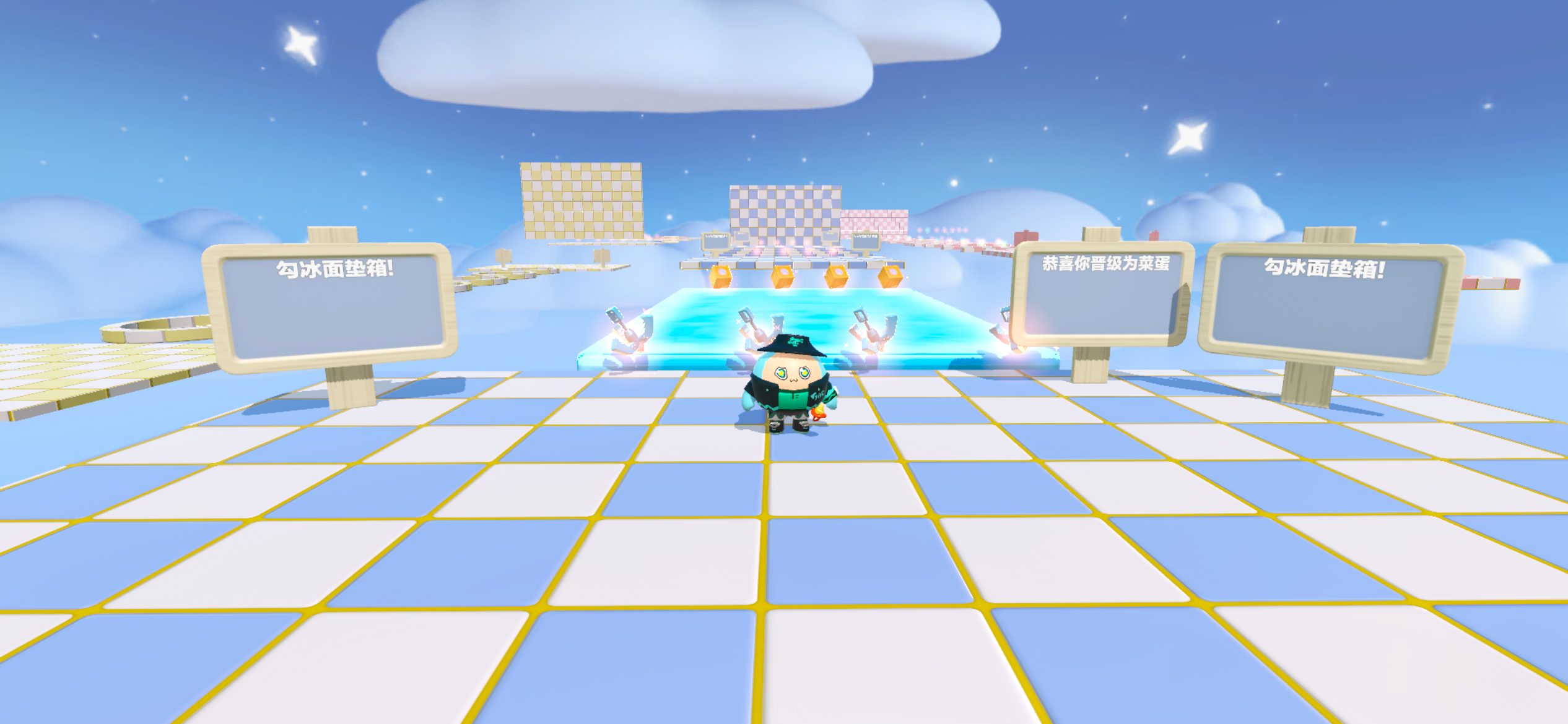 点进地图是一个大厅!作者把这个地图分成了粉,蓝,黄三个等级,难度层层递增哦。看看小蛋仔们能闯到哪个级别吧~