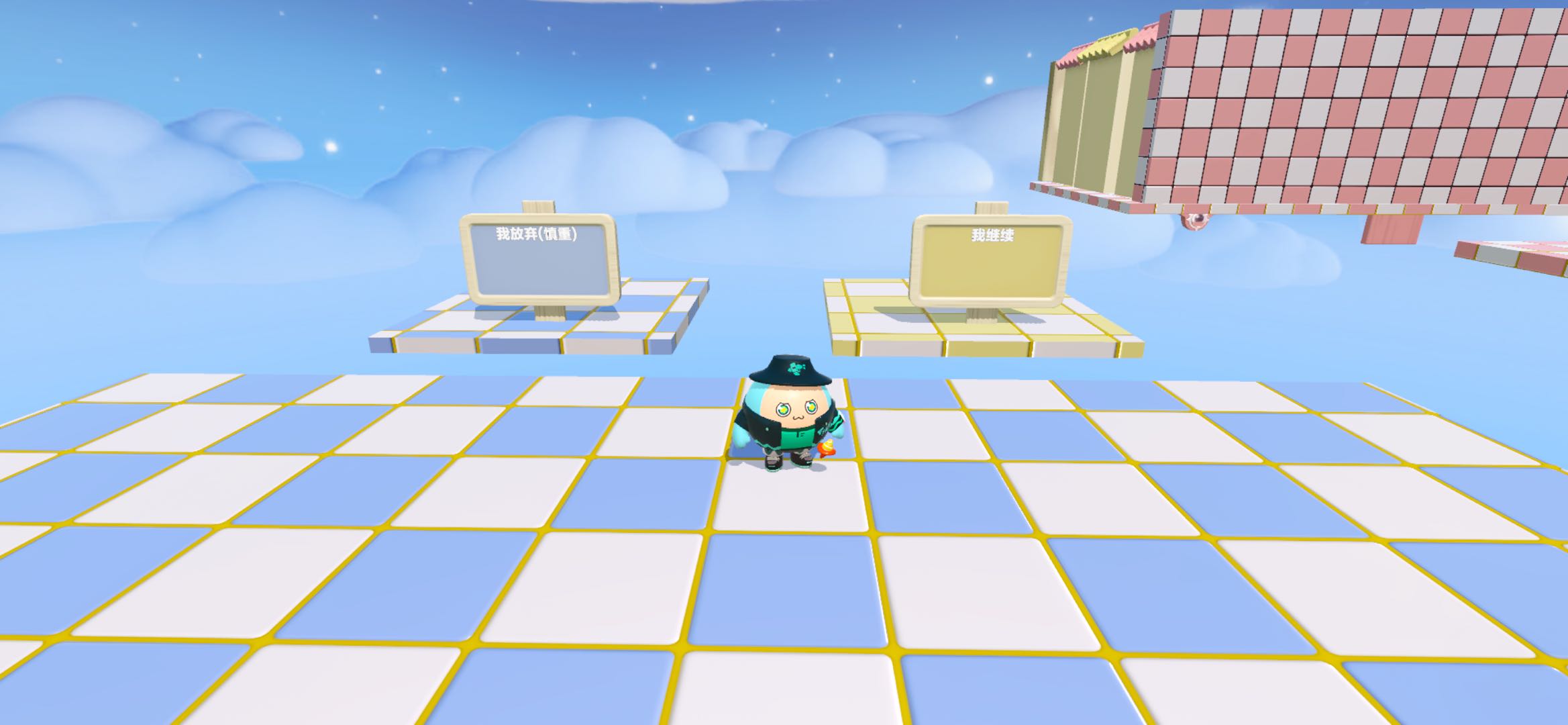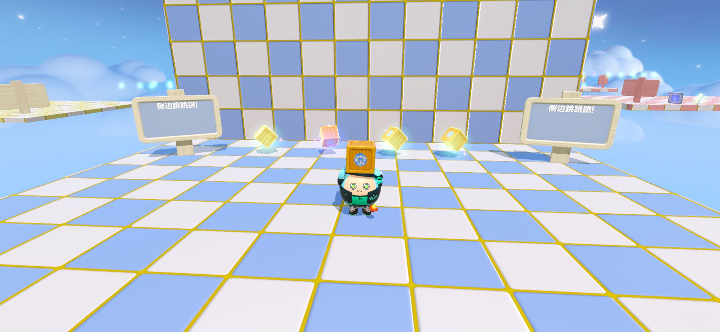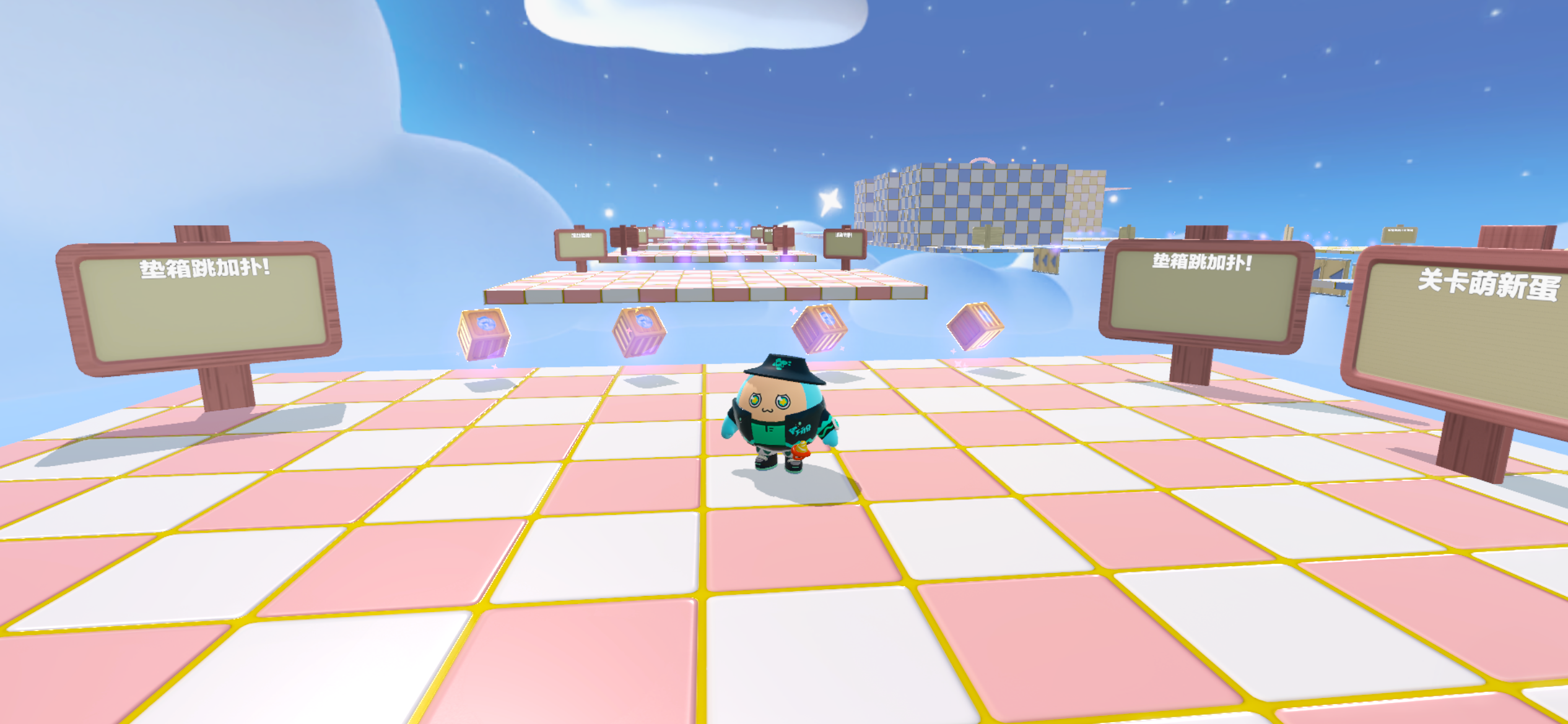 进来之后,首先是粉色难度的关卡!都是一些很基础的道具操作:垫箱子呀,弹板呀,黑洞之类的,相信这里对大多数小蛋仔都没有难度😘