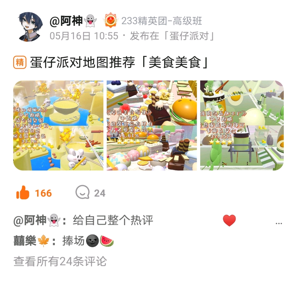 1.@阿神👻 蛋仔派对地图推荐「美食美食」