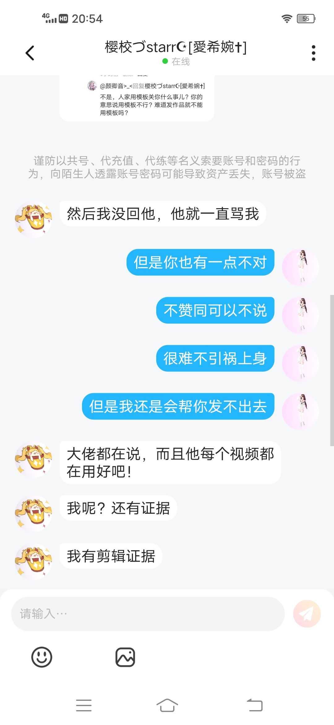 这里是证据,虽然上期诋毁是有一点不好,但是他先骂人,别人正当防卫。(不喜勿喷)不信私聊,本人给证据