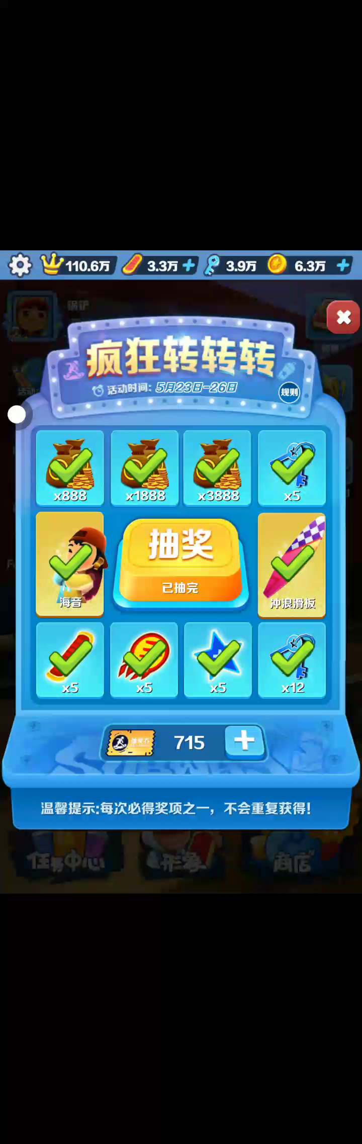 今天晚上的抽奖都抽到了吗?