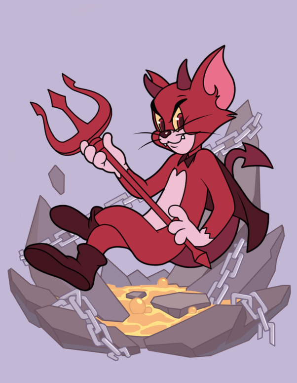 *恶魔汤姆驾驶着列车从深渊呼啸而来。他通体火红,脑袋上有一对略显狡黠的小触角,手持三叉戟的他一直鼓动着汤姆在老鼠面前找回场子。狡黠的恶魔汤姆身边还有一群忠诚的仆从,他们会不遗余力地完成主人的任何指令。