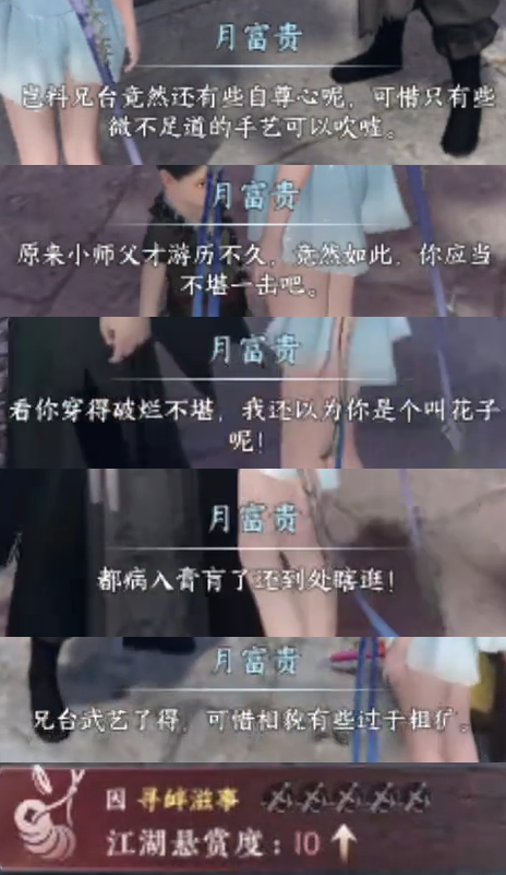 “语言挑衅”指玩家与NPC交流时,使用了涉嫌嘲讽、骚扰的语言内容,并对NPC造成了一定精神上的伤害。