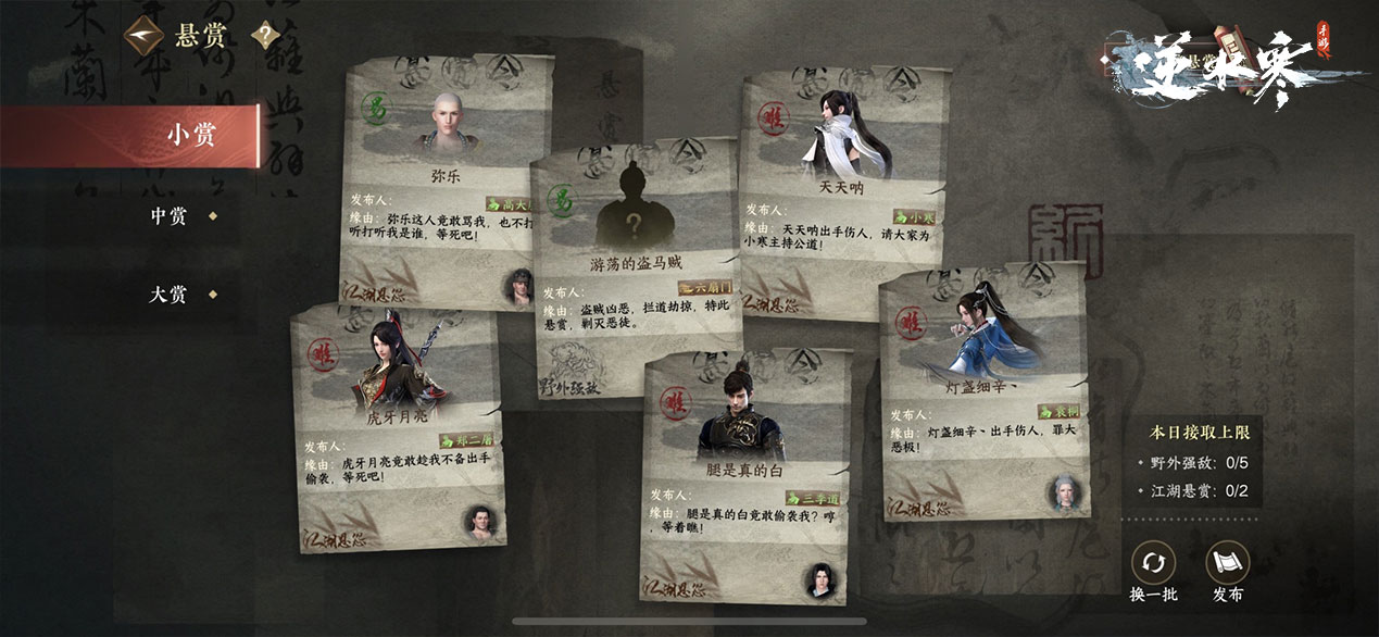 同时,各个NPC以及六扇门一共发起了274961条悬赏通缉令:有作恶多端的坏蛋玩家、横行霸道的恶霸NPC,以及包括凶狠野兽、流匪贼寇、邪恶怪人在内的各种Boss,84%都被秉承正义理念的玩家解决啦!