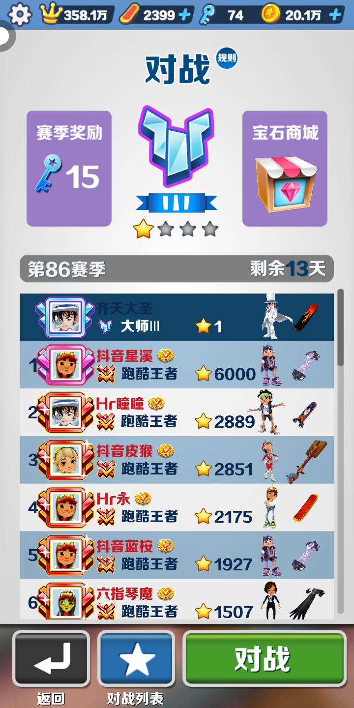兄弟们,我分数赛大师了。太好了,太高兴了。