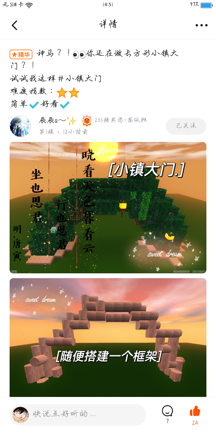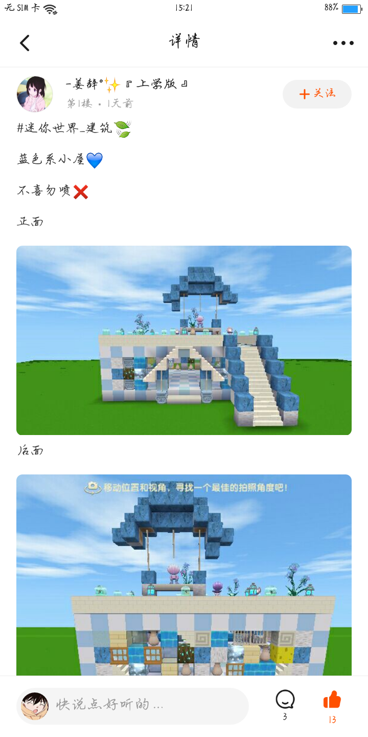 (注:每个人都有上周刊的机会,想上周刊就多更优质建筑,多做高质卡点,剧情等内容,每周周刊的人数是不规定噢🙈🌷)