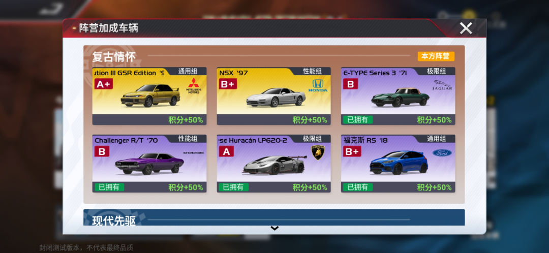 选择阵营后,车手们驾驶已拥有的阵营车辆参与比赛,将在活动中获得巨大优势,获得更多的奖励。