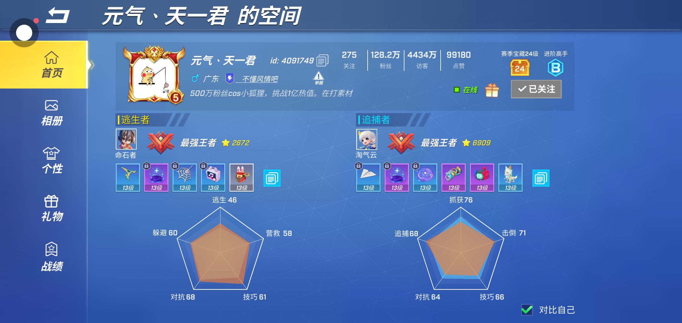 我比天一君的技巧多,追捕比他也多,我真厉害,不要给天一君看