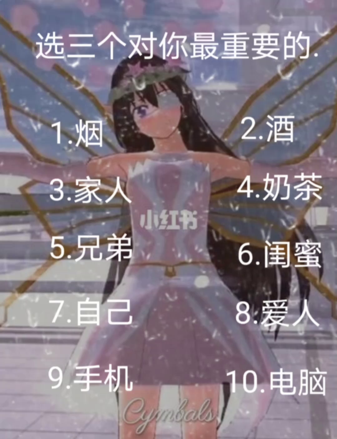 选三个对你最重要的东西吧!我看看谁的让我满意,我就关注他(她)
