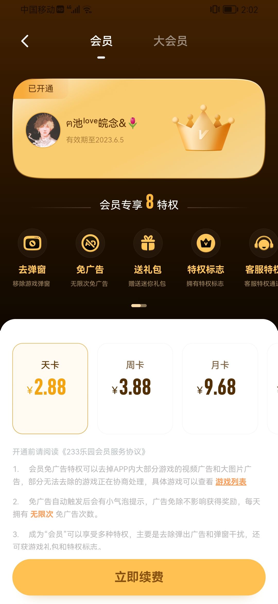 已开通会员,玩游戏还要看广告
