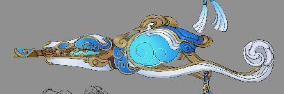 玛蒂的武器:通过传统壁画元素中富有秩序的几何样式的设计语言,再结合传统祥云图案的曲线设计而成。