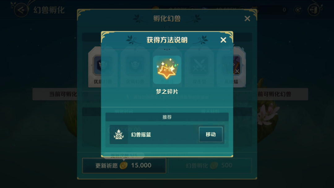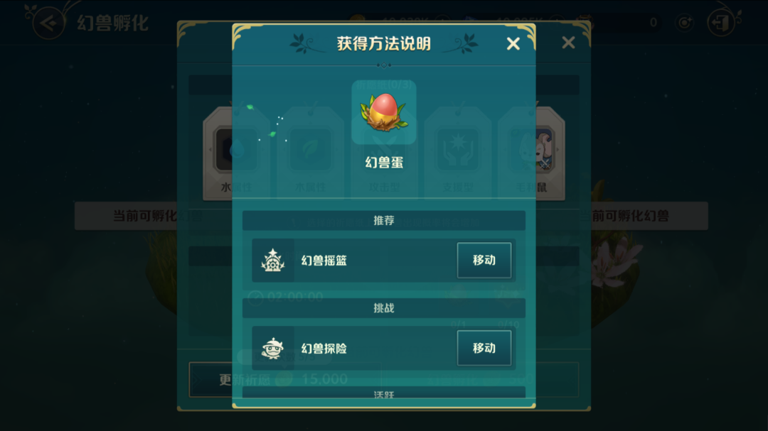 ①“选单-挑战-成长副本”中【幻兽摇篮】副本产物,可以大大加快孵化幻兽的速度。