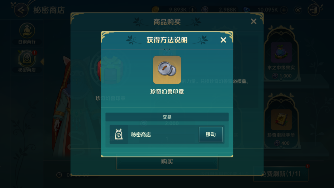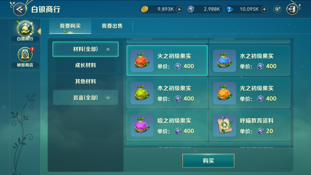 ①所有元素的幻兽初级进化果实,均可以在【白银商行】购买获得