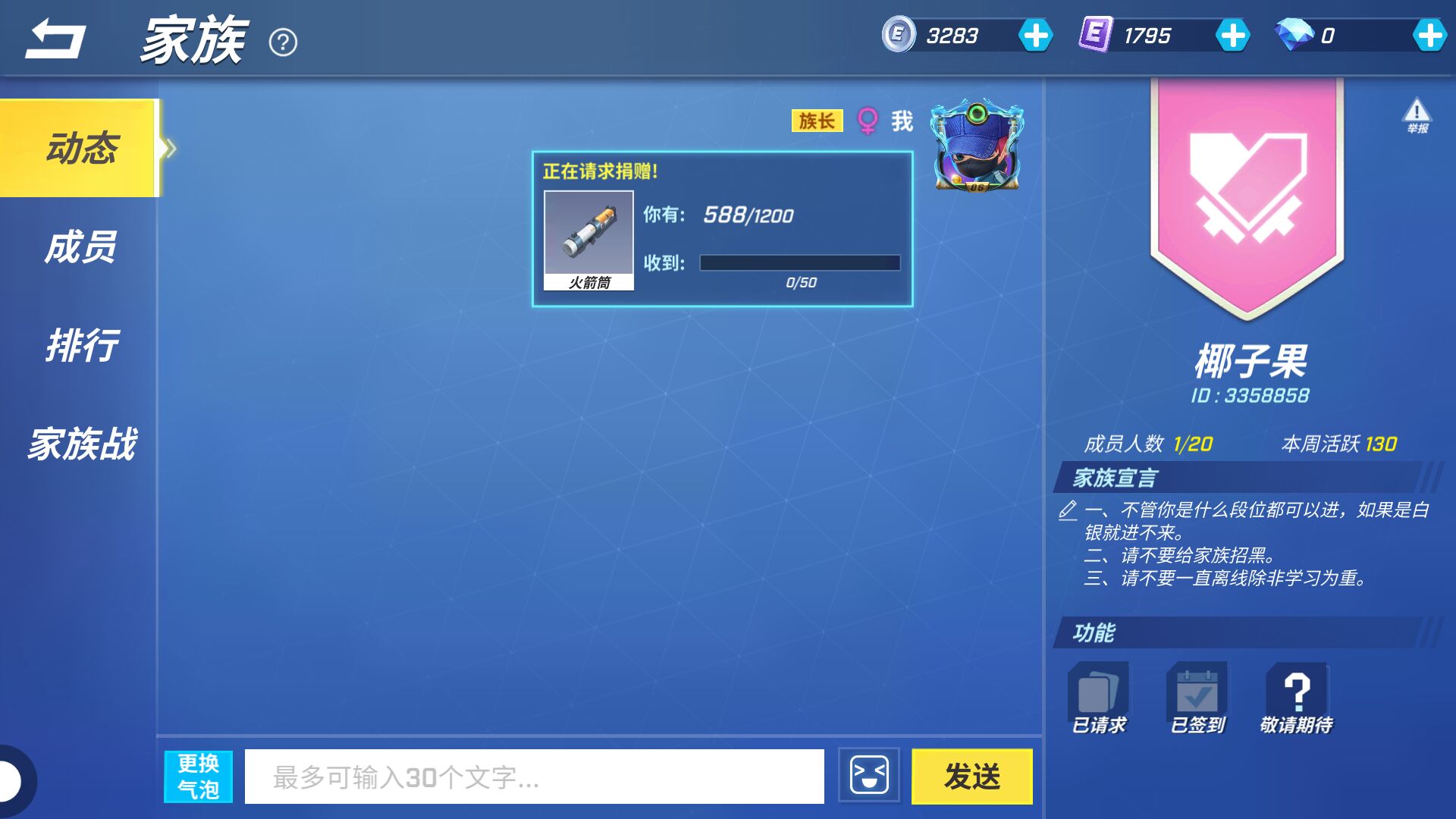 家族还没有人进,我的段位有点低。