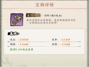 1、宝物升级获得的属性提升是非常巨大的,也是宝物加成最主要的来源,宝物升级不仅能提升基础属性,还能提升特定属性,等级越高属性值越高,升级材料为宝物碎片,获取途径由很多,主要来源于天机阁、宝物活动等