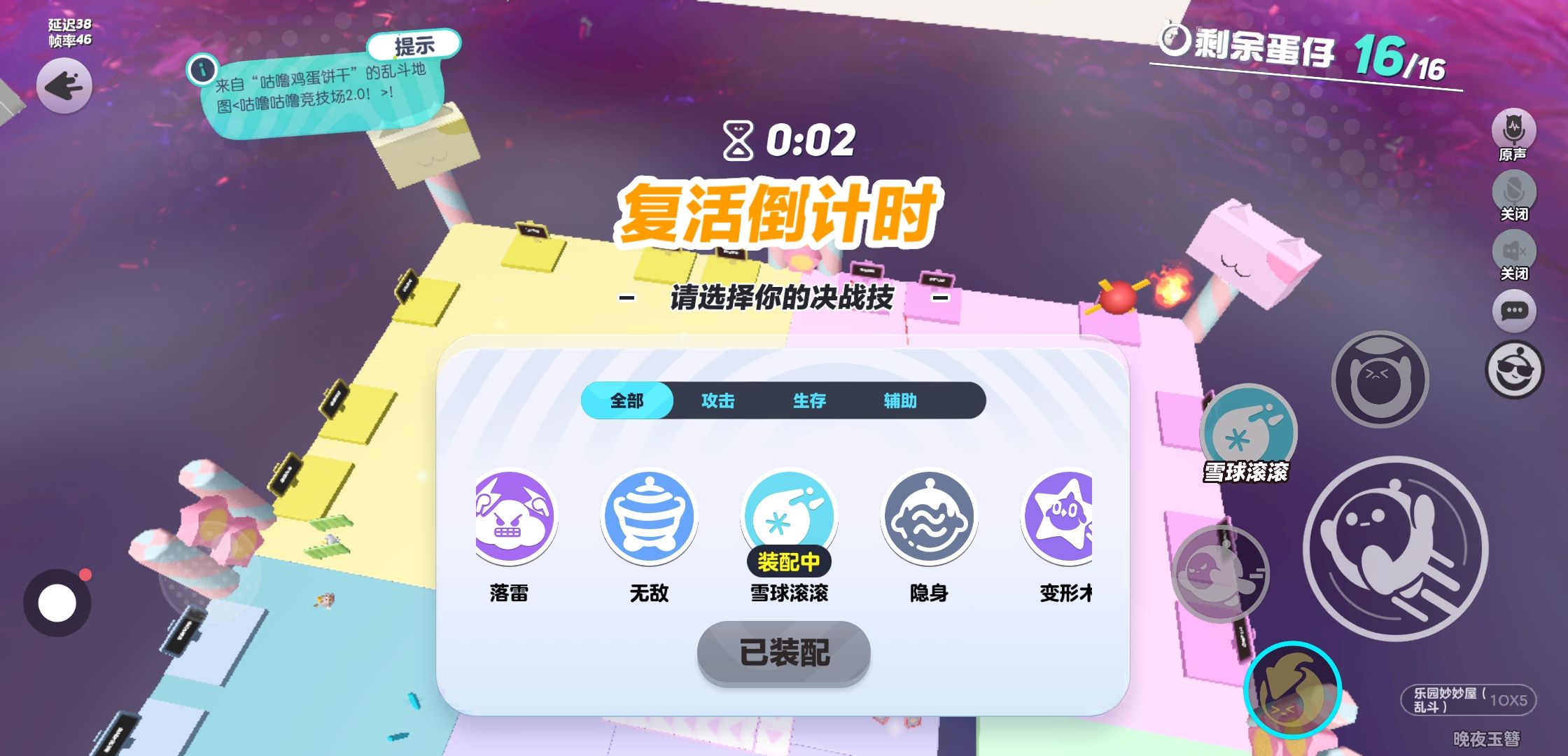 第二局,是竞技场,我是配了个雪球滚滚,本来想拿道具,结果没拿到好的😔