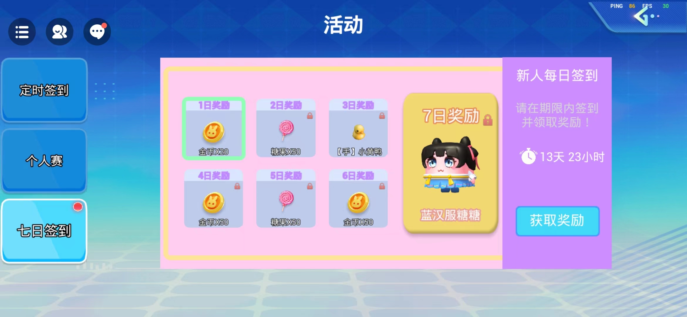 到第7天有超好看的皮肤奖励哦!