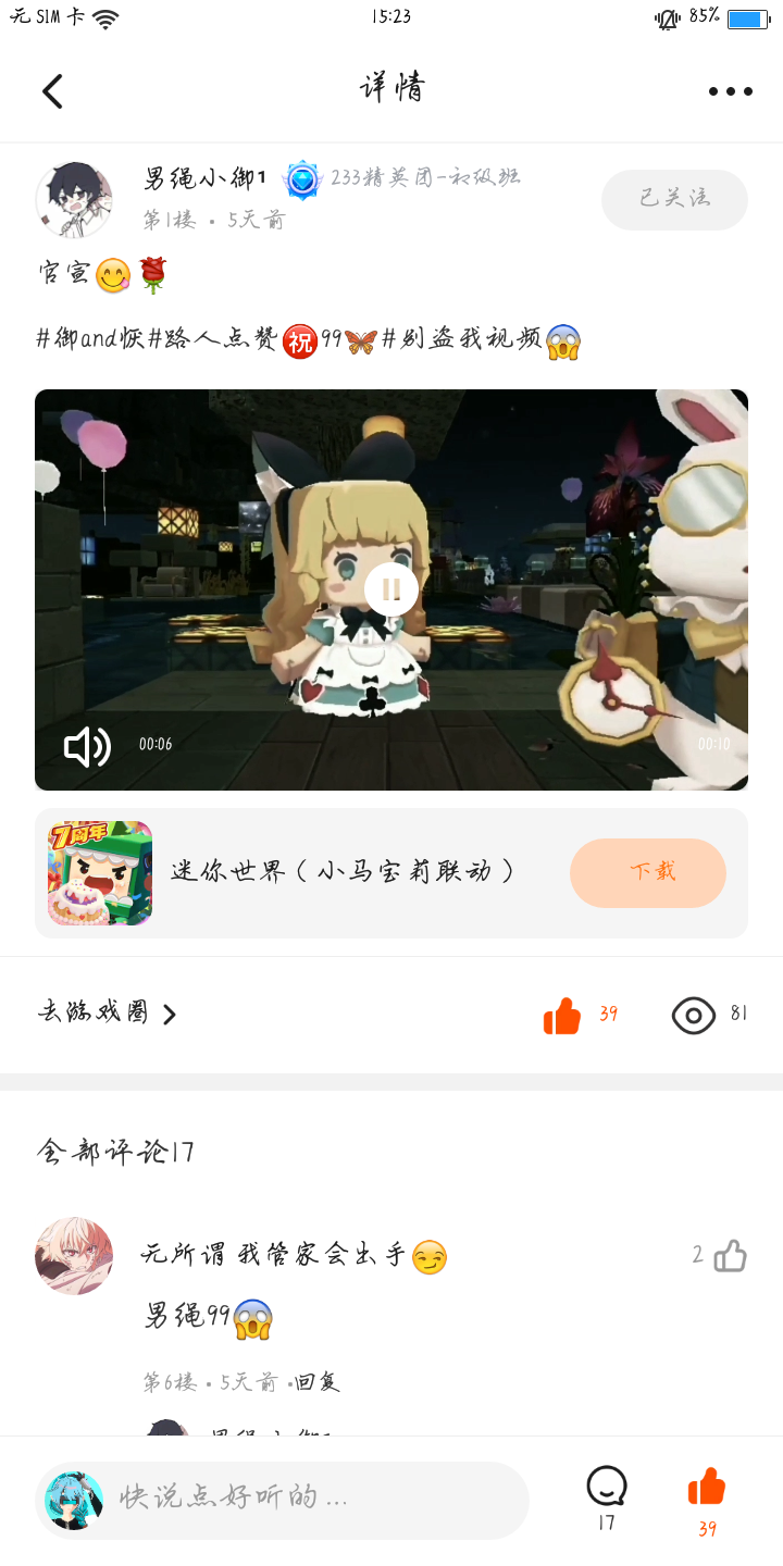 「刊外补充➠想上周刊却没背注意⁉️周刊我是在迷你圈静心挑选的,也是阿黔的小助手挑选的噢~不会去刻意的关注哪个人,想上周刊的发完帖后可以去我的评论区评论一下噢,我会时刻关注,这样上周刊的几率又大大增加了呢!」