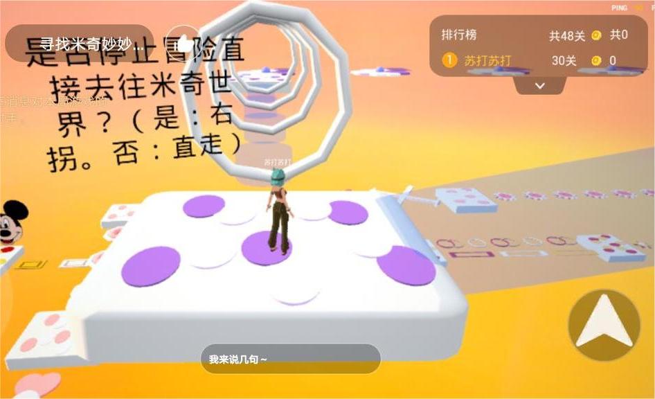 一进入到场景内就有米奇的大脸暴击🐹,真是泰酷辣🤗!场景关卡设置得很好看也很有意思🆗!到第30关的时候,可以自由选择是直接前往米奇妙妙屋🐾,还是继续闯关🐛,对闯关新手很友好哟👐!选择直接前往的话,只用跑过一段长长的通道🏃,在光的辉映下✨,就被传送到了米奇妙妙屋啦🏰。苏打选择直接躺平并和小米奇指路侠合影📸🙋!大家快来一起踏上寻找米奇妙妙屋之旅吧🌅!!