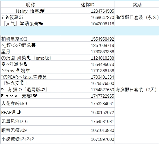 恭喜以下小伙伴中奖~