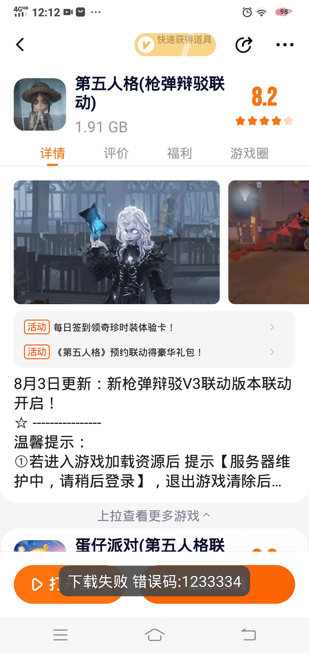 真的无语,刚打开那个第五人格就要重新下载是什么情况?真贱