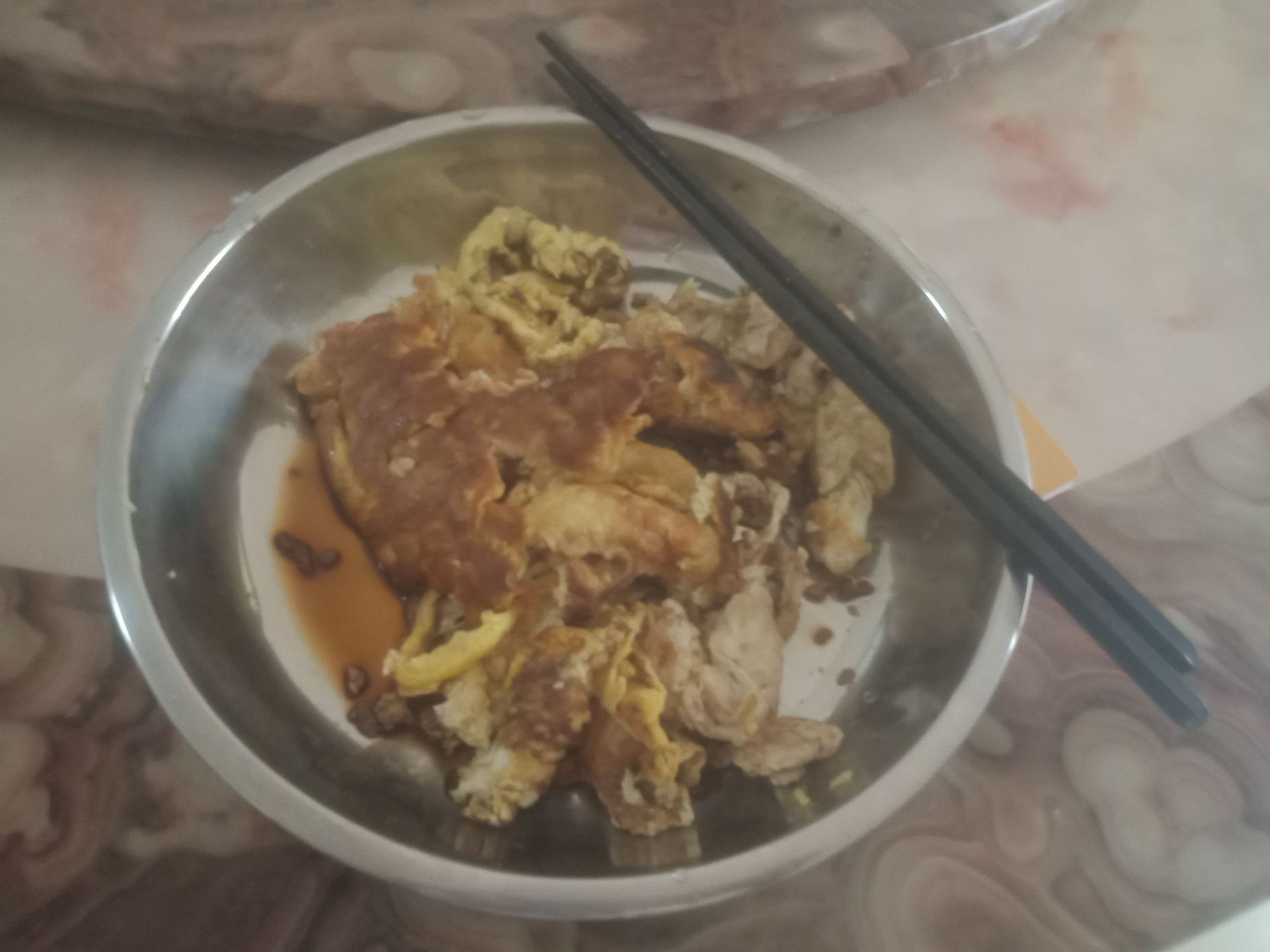 我做了炒蛋,竟然糊了。