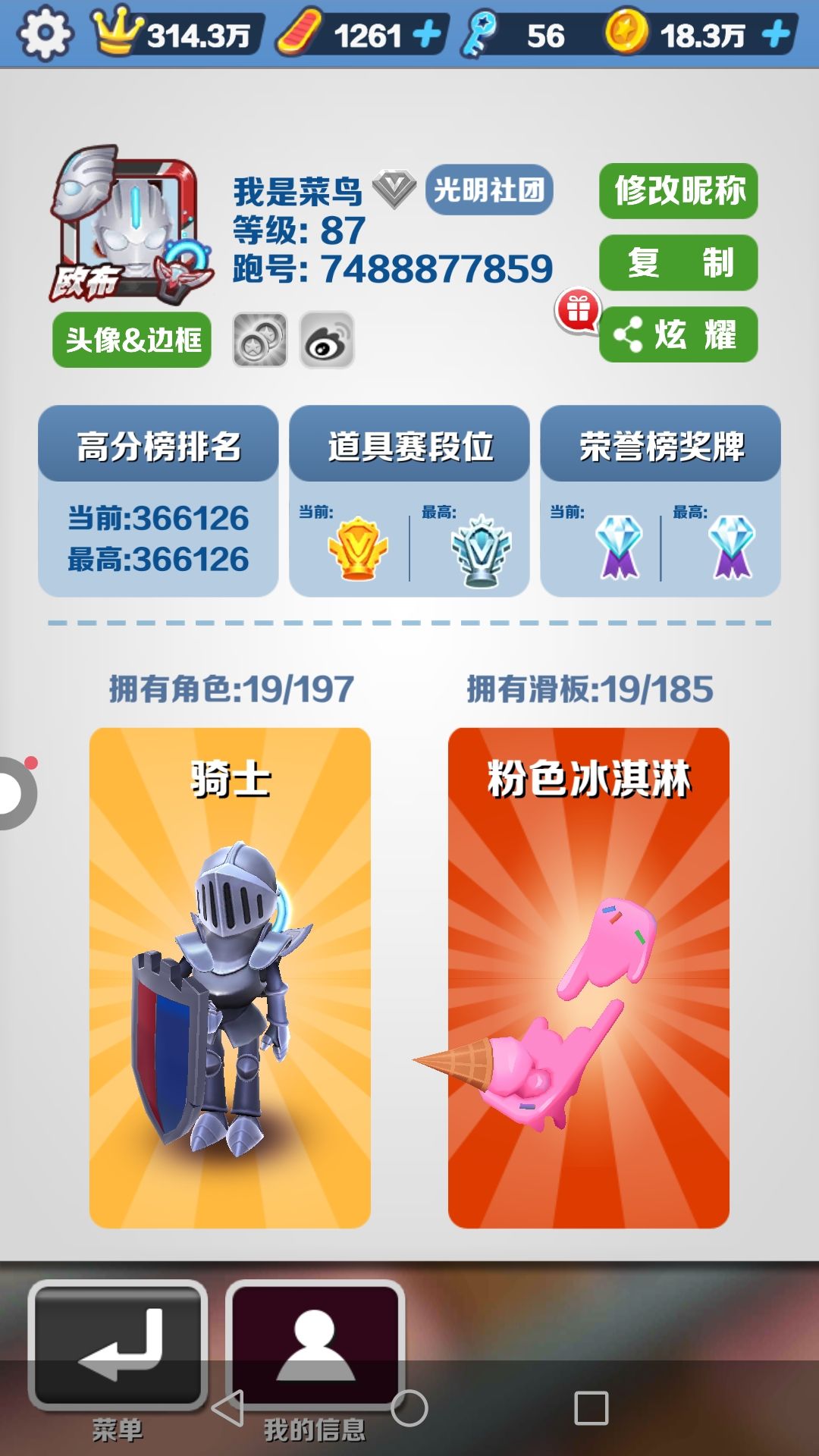 大家看,这是我的号,我的皮肤和滑板,比不过身法大佬