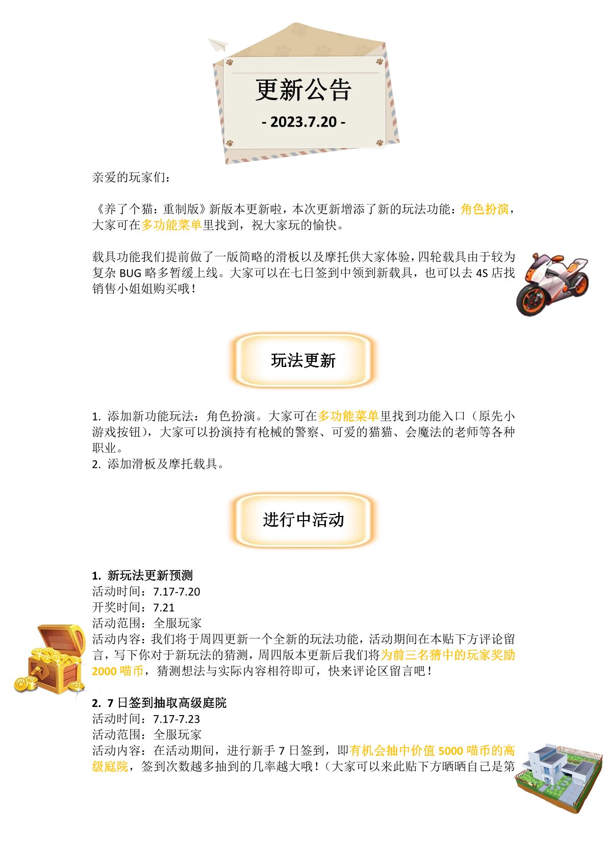 《养了个猫重制版》已经上线一周,游戏圈有许多玩家发表了自己的看法与疑惑,这里集中收集了几个问的比较多的问题统一解答一下,后续在此贴下面提出的问题我们看到后也会尽量回复解答的,这次先为大家解答一下以下几个问题: 1.问:该游戏与原《养了个猫》的关系? 答:该游戏依然为原先的养猫主创人员带头进行制作的,不存在盗版抄袭一说,本次重制使用了还在测试的MW编辑器,与原作存在一些表现上的差异。 原作由于种种原因不会再更新了,因此这次以全新的引擎重置了游戏,后续还会更新目前还没开放的功能。如果大家喜欢的话,等完全重制完原版内容后,还可能会继续在本作更新新的游戏内容。 2.问:为什么我原先玩了好久的存档没了? 答:因为这是两个游戏,制作所用的工具是不同的。原作不会下架,但两个游戏的存档也不会互通,大家原先的存档没有删除,还在原版游戏中。