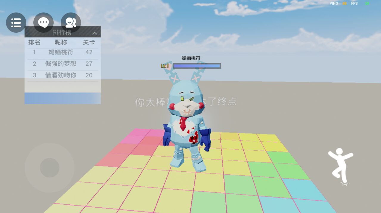 到终点啦!\^O^/ 前面还挺简单,后面就开始变难了,方块之间的距离不完全一样,不是很好走😜