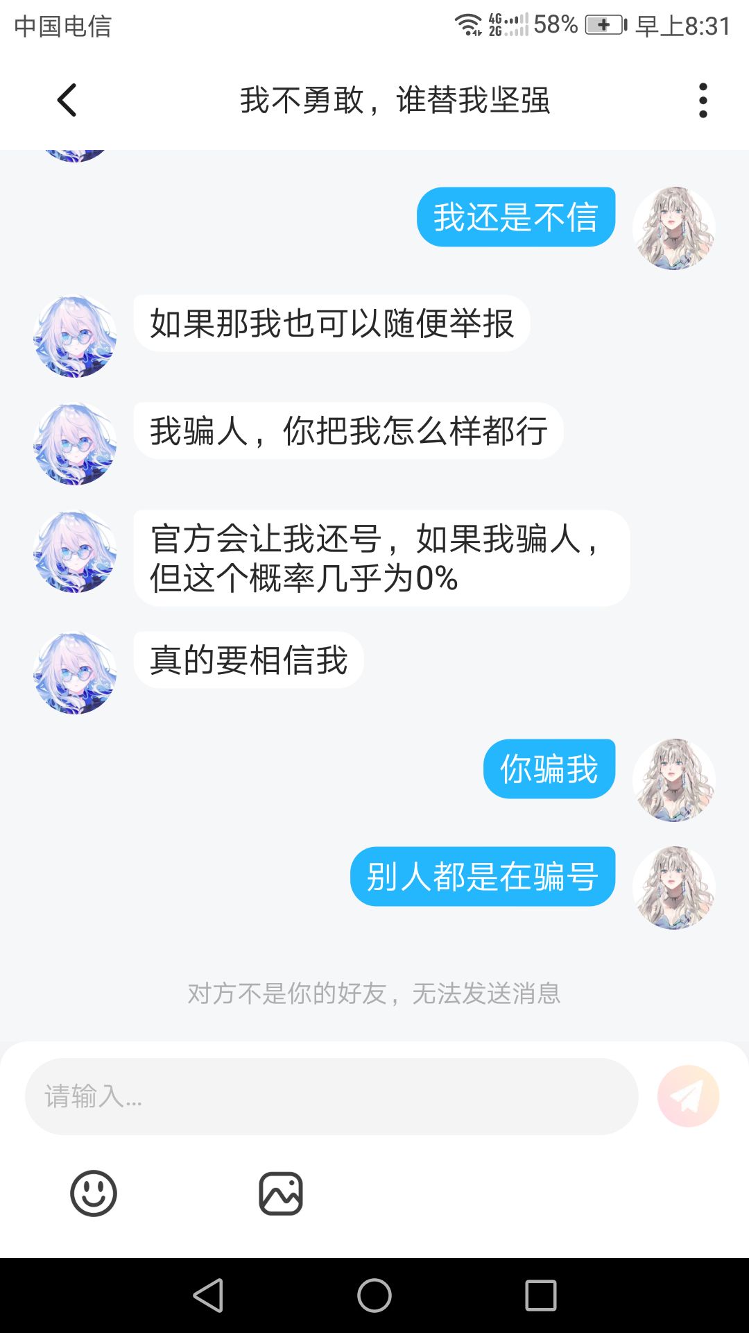 因为这个人骗别人的账号被封号了