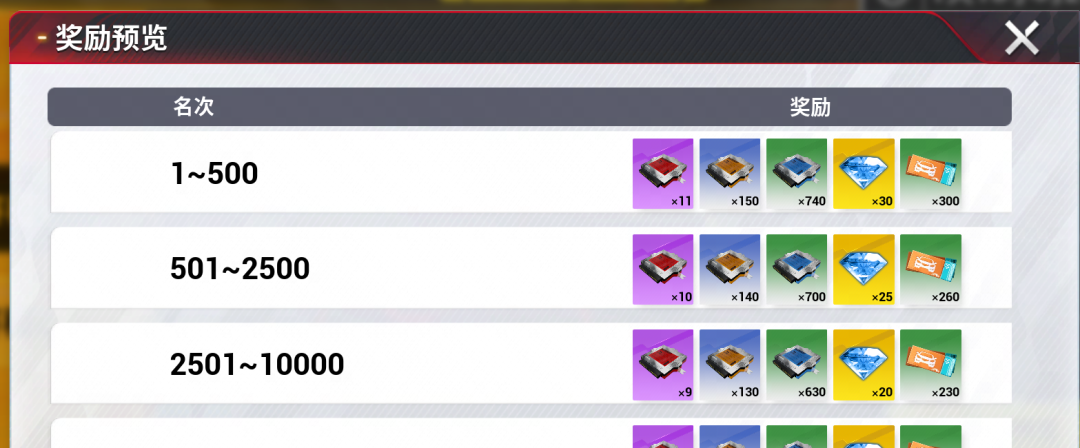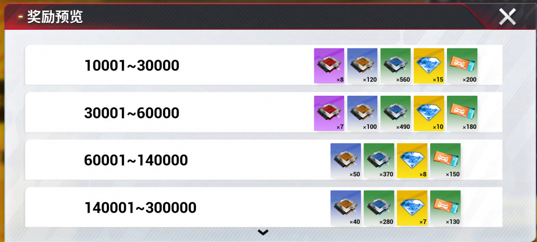 (各区间奖励,详情可明日登录游戏查看)